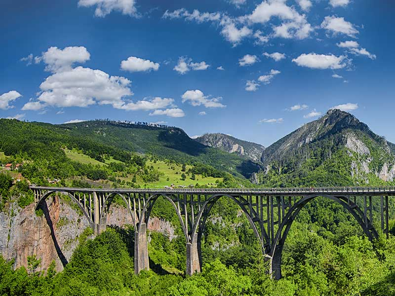 From one national park to the other: wonderful mountains of Montenegro. Departure from Zabljak to leave the Durmitor, which offers behind you its most beautiful landscapes and breathtaking panoramic views. Arrival at the Durdevica bridge which crosses the Tara canyon. Impressive! Continue south to discover the isolated monastery of Durdevica.