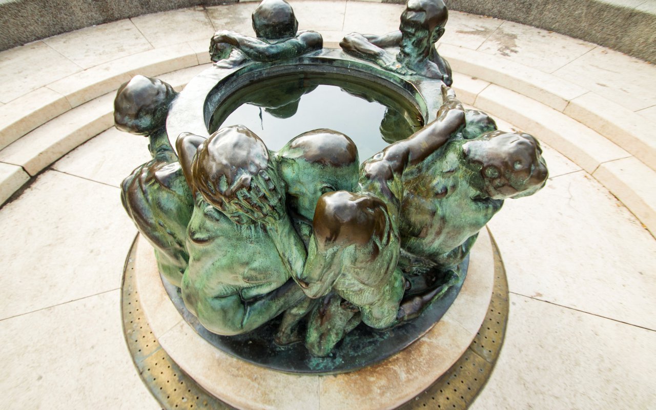 The sculpture “The Well of Life” was created in 1905, at the very beginning of Mestrovic’s career, on the occasion of the secession of Vienna. This bronze fountain was exhibited at its present location in 1912, opposite the Croatian National Theater in Zagreb, the capital city. It remains one of his major works. Why is the Fountain of Life a Mestrovic masterpiece? It represents the cycle of life with 10 naked bodies forming a continuous line around the pool. The beings represented are of increasing age, from children to the elderly. All are represented communicating, acting. Only one character stands out: the oldest. He gazes thoughtfully at his reflection in the water and seems troubled. Mestrovic’s talent can be seen in the expressions and feelings that he manages to communicate through his sculptures.