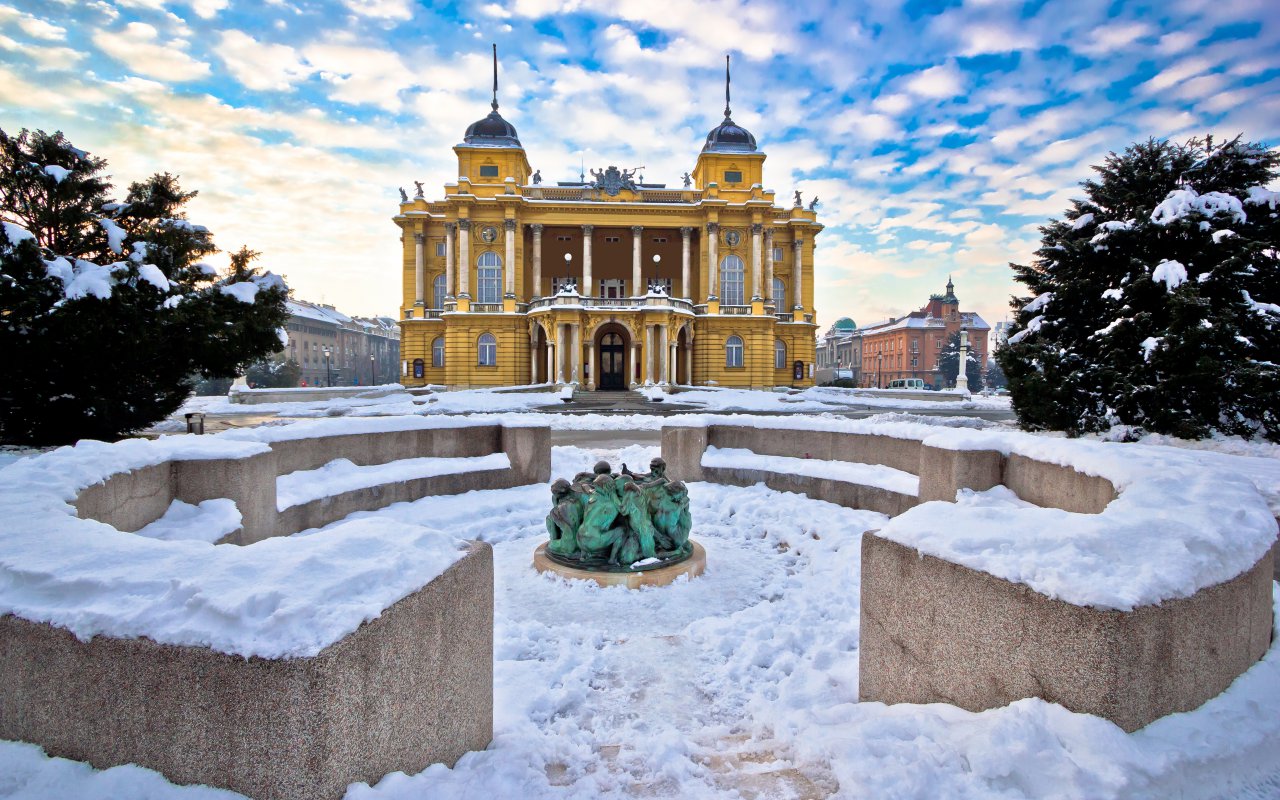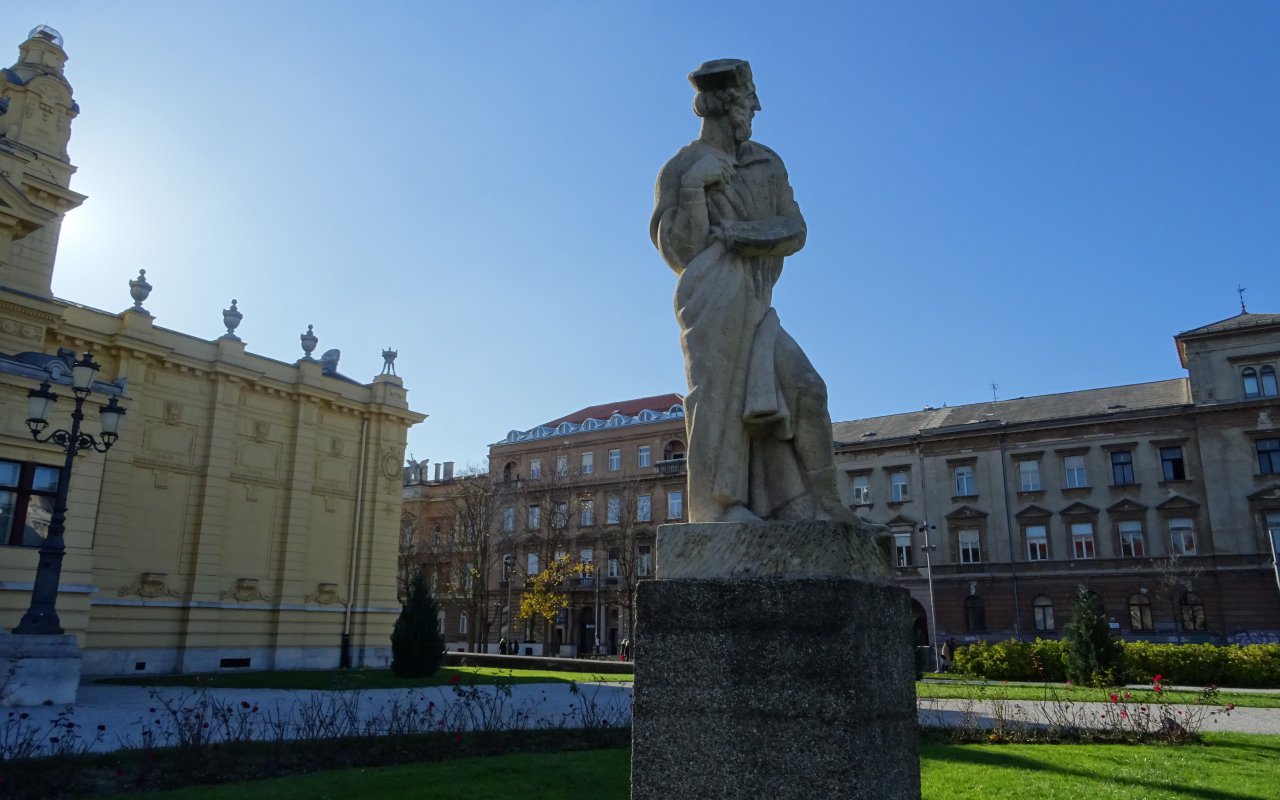This renaissance painter of Croatian origin is represented in front of the Arts Pavilion, a superb Austro-Hungarian building with a glass roof, on King Tomislav Square. The stone statue seems to be in motion to look at something with interest and energy or to look for inspiration between two brushstrokes.
