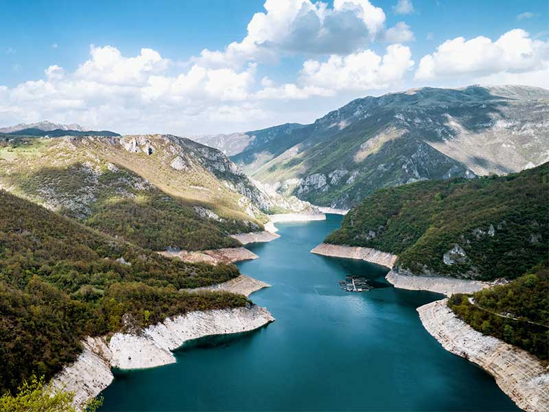 From the northern mountains to the largest lake in the Balkans, including the Ostrog Monastery. Crossing the Durmitor National Park and panoramic descent to the canyon and lake of Piva. The winding road is spectacular and breathtaking. Stops at Lake Piva and then at the monastery of the same name before reaching the Ostrog Monastery, a religious monument in the heart of a cliff, the most beautiful in Montenegro. Continuation towards the south. Arrival on the shores of Lake Skadar, the largest lake in the Balkans. Check-in at the hotel. Overnight in a 3-star villa. One-bedroom villa (2+2 persons).